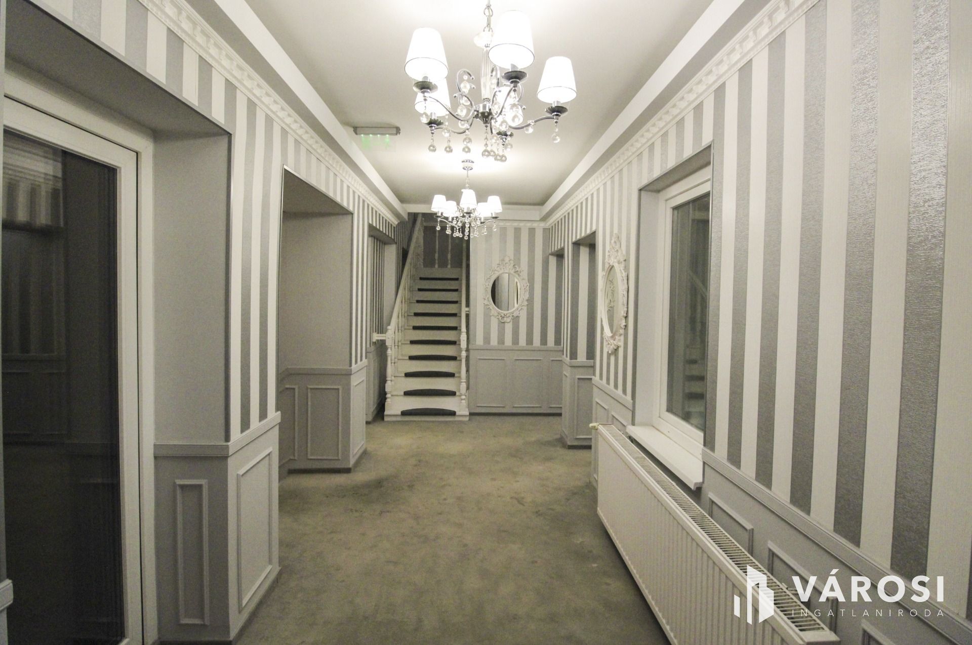 Az épület dekor világítással rendelkezik, amely a modern megjelenést tovább fokozza. Az ingatlan biztonságáról riasztórendszer és kamerarendszer gondoskodik, amely az egész épületet lefedi.
