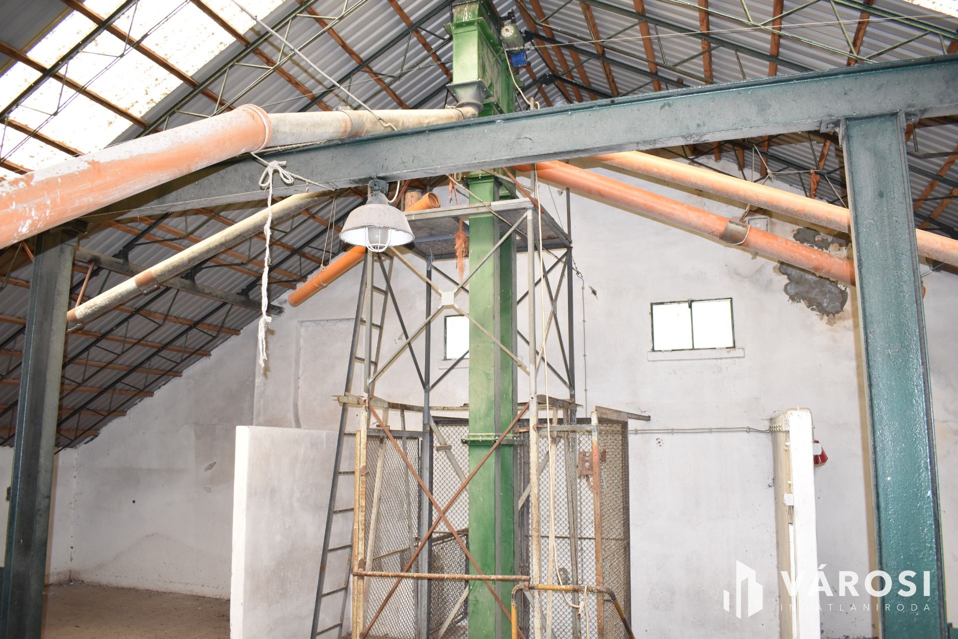 The building on the property was constructed in the 1960s, is structurally impeccable, with brick walls and a reinforced concrete frame. The building previously operated as a grain storage and drying facility. Thanks to its owner, continuous improvements have been made in recent years, including replacement of the water pipes, the entire electrical network, and the installation of 'industrial electricity' (3x50A), which currently operates at residential rates. It is suitable for the installation of a solar panel system. The main building’s roof has been renovated, and mains drinking water has been connected. On the ground floor, a cozy studio apartment (with kitchen, bathroom, and toilet) has been created. Heating is provided by wood-burning, air conditioning with heating/cooling function, and other electric heating options. Spaces for a washing machine, dishwasher, extractor fan, refrigerator, TV, and audio equipment have been set up; hot water is provided by an electric boiler. For goods loading, a large gate has been structurally prepared, with supporting pillars and a lintel. Additionally, foundations and sewage piping have been prepared for a few ‘wet’ rooms.