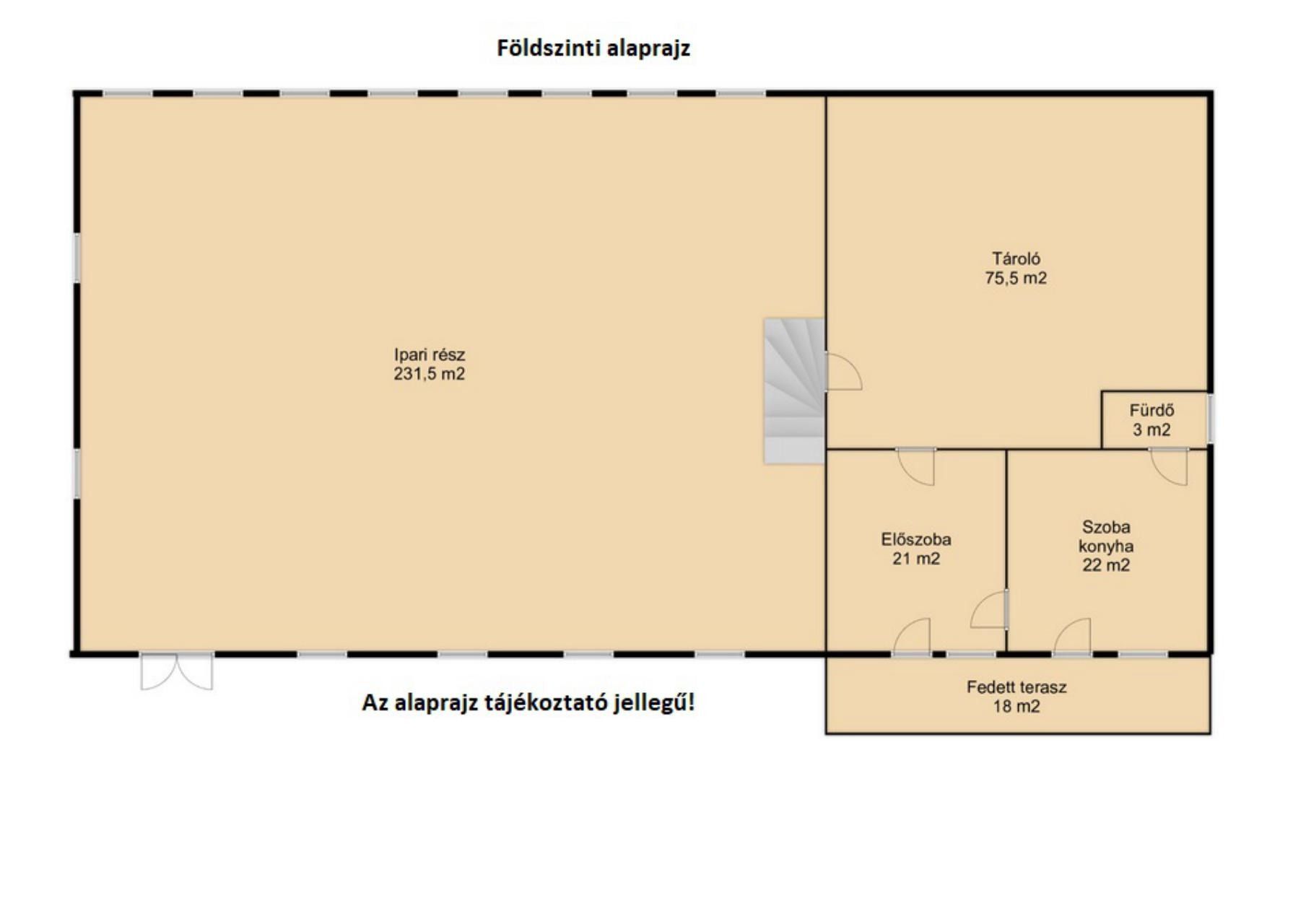 Az épület hasznos területe 816m2, melyből a garzon 24m2. A körbekerített terület 2874m2, ahová két nagykapun lehet bejutni. Az udvaron található továbbá, egy jó állapotú melléképület, mely korábban mázsaházként funkcionált.