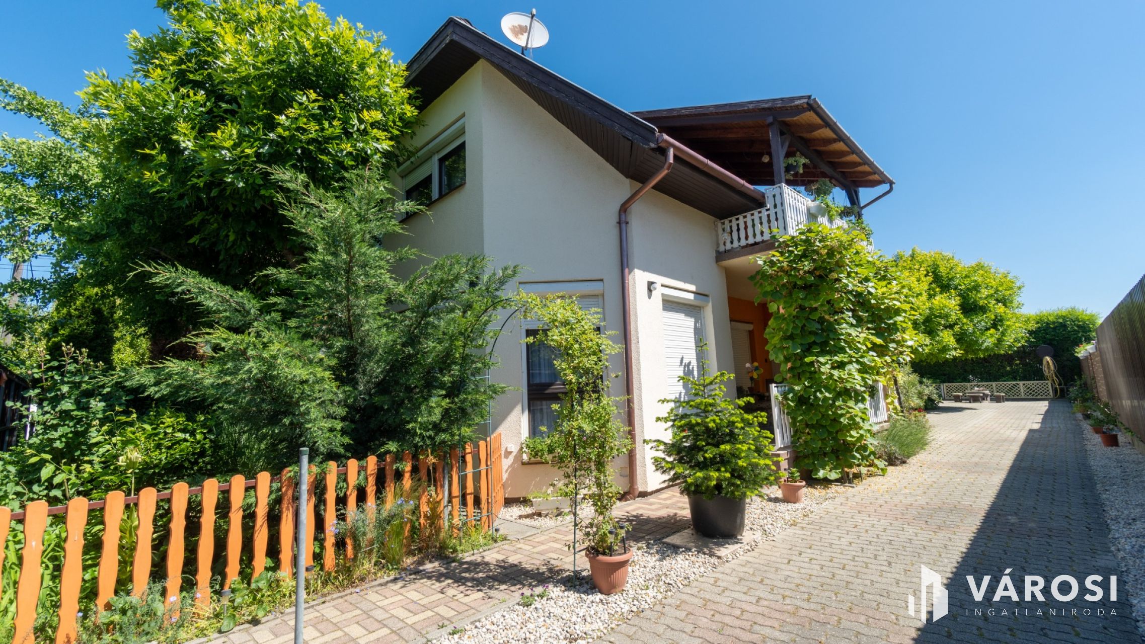 A kert parkosított és gondozott, ahol gondtalanul élvezhetjük a kellemes nyári estéket. A kertben rendelkezésre áll fúrt kút is az öntözéshez. Az udvarban több autó számára térkövezett beálló van biztosítva. A fedett terasz és erkély lehetőséget ad a friss levegőn való pihenésre.