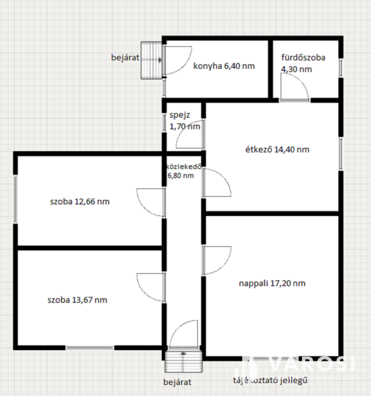 Összetétele: 2 szoba, nappali, közlekedő, étkező, konyha, fürdőszoba és spejz.
