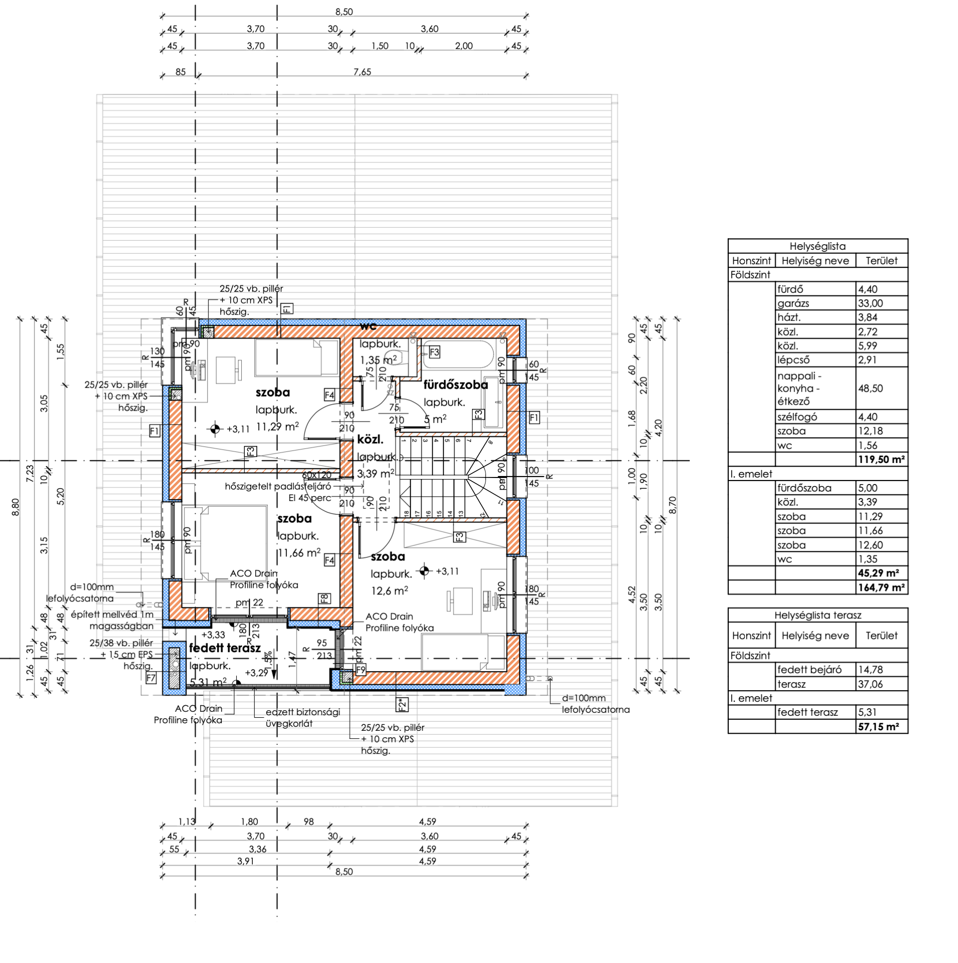 - nettó alapterület: 165 m2 + 20,1 m2 fedett bejáró és erkély + 37 m2 terasz