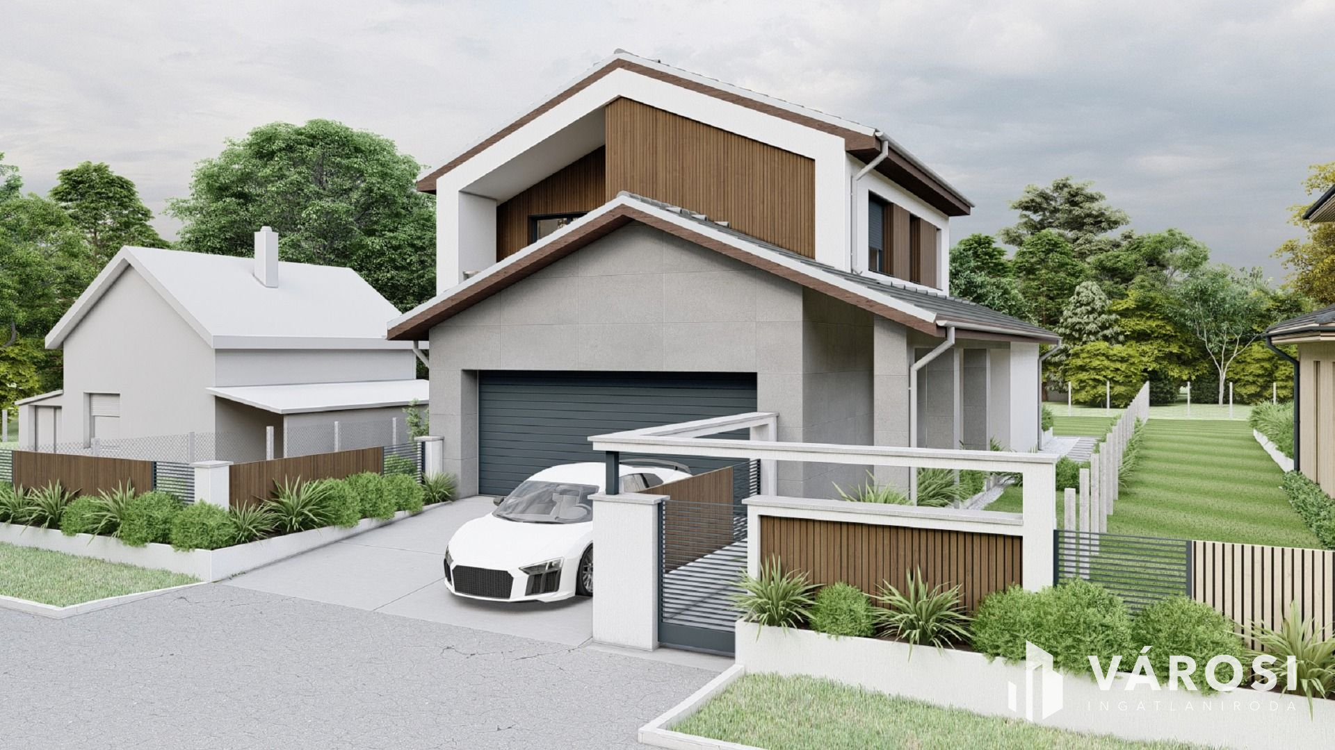 - külső részen: térburkolást a garázsbejáróban, ajtóban, termőföld feltöltést, kerítést