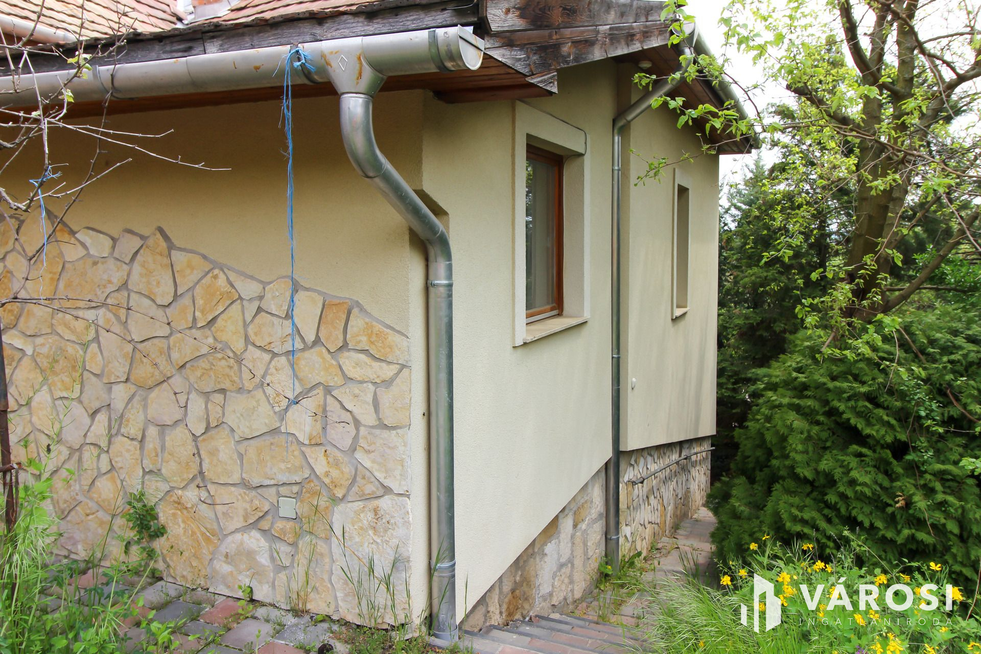 Az ingatlan egy 2114 m2-es telken helyezkedik távol (kb 100 m ) az utcafronttól ,így a kert rész az épület előtt található .