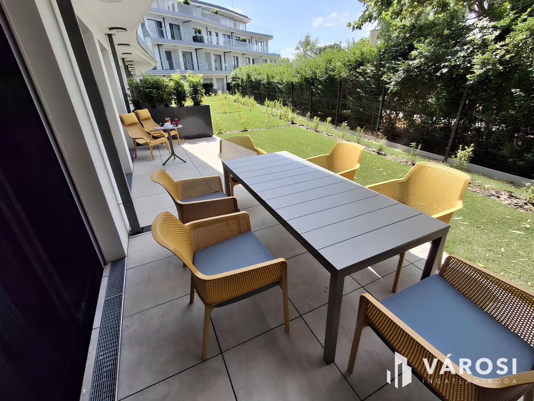 - Saját privát kertrész 43,59 m2, melyből: terasz: 25,58 m2 – tágas, ideális családi vacsorákhoz, kert: 18,01 m2.
